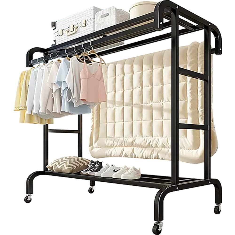 - Move or Stay360: Otation Wheels Make It Easier to Move This Rolling Clothes Rack from Indoor to Outdoor, Easy to Move Around Anywhere You Like. 2 Wheels Come with a Brake to Lock It in Place When Stability is Needed.