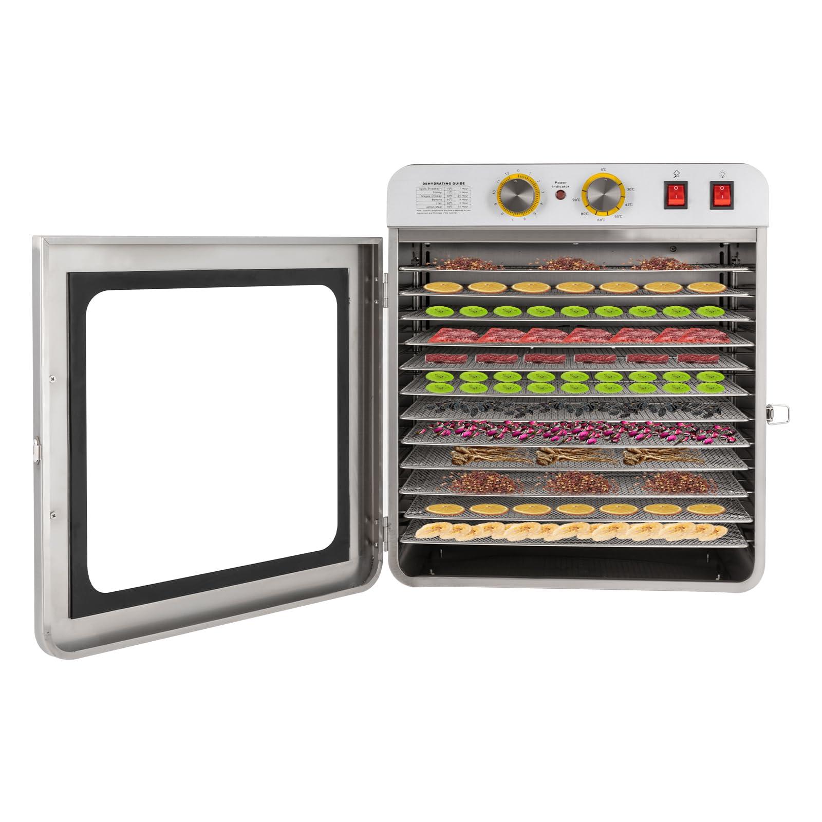 - Large Capacity12 trays with a strong bearing capacity allow you to put in enough ingredients at once, avoiding frequent operations. The 1.38-inch tier spacing provides more space for thick food.