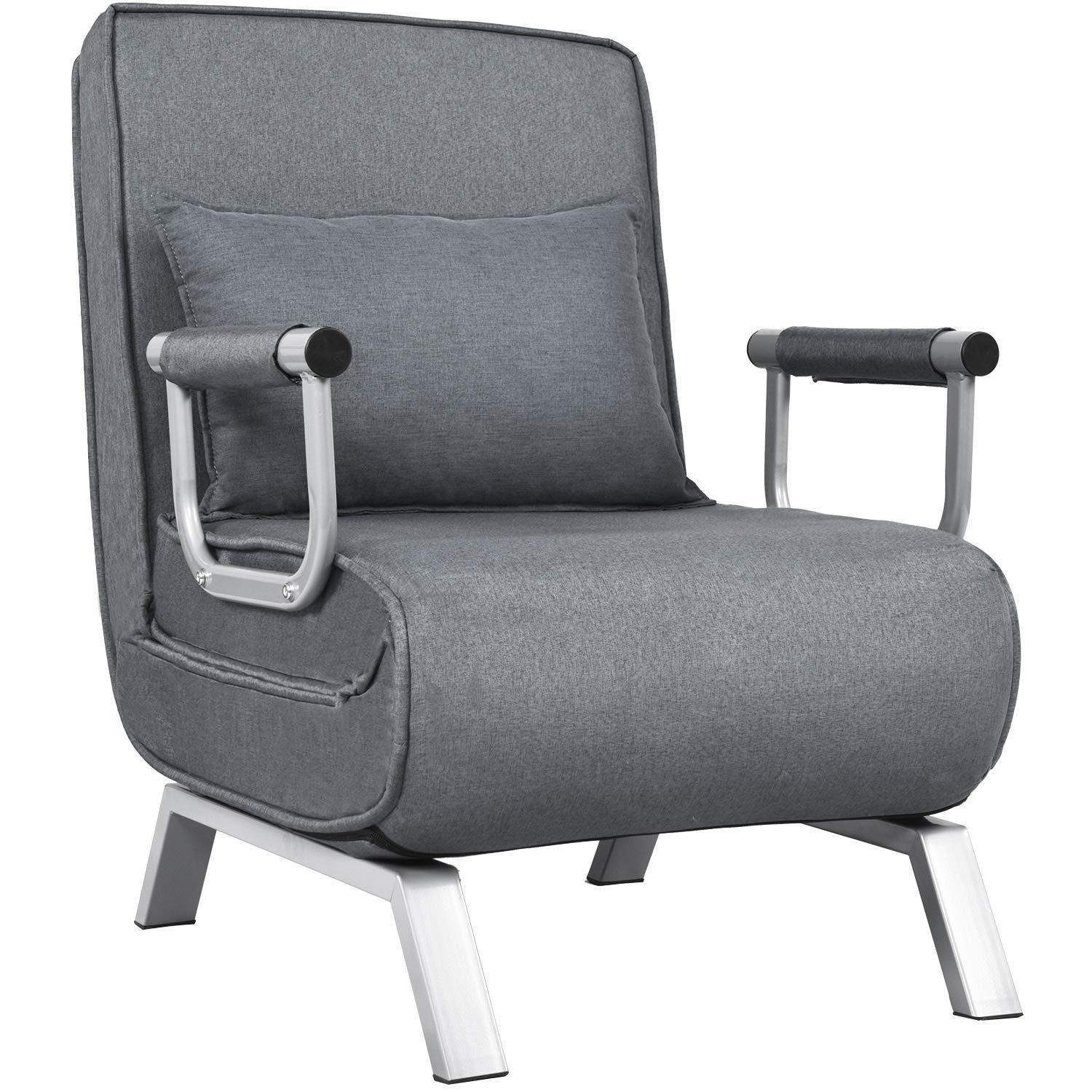 - FOLDING ARM CHAIR SLEEPER: 3 in 1 convertible chair easily folds out to lounger or down to bed. 22 inches wide backrest is practical as a guest bed for sleepovers or extra sleeping space. Single sofa sleeper is suitable in the living room, dorm room and office