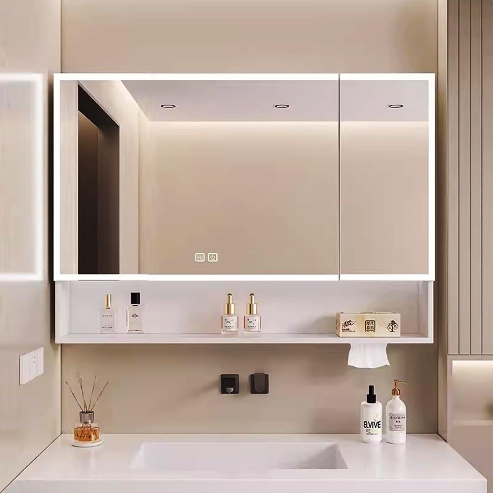 - Large storage spaceThe inner space of illuminated medicine cabinet is divided to 5 compartment,you can store your bathroom stuff in classification, Mirror cabinet with light provide super large space,just say bye to messy bathroom!
