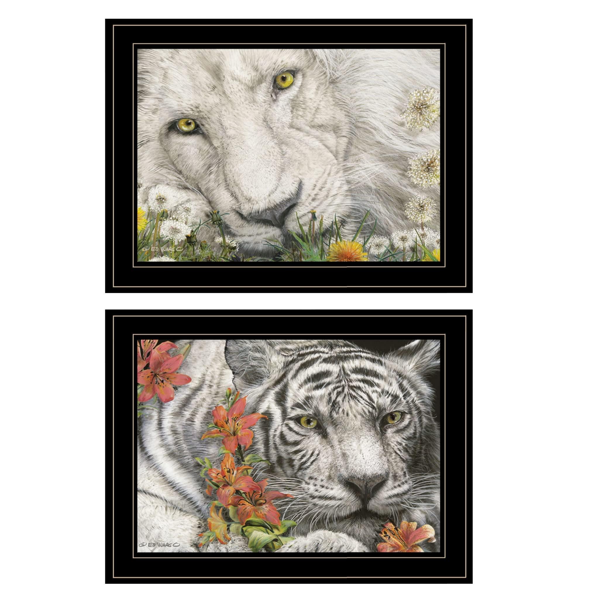Set Of Two Tiger Lily Dandy Lion 2 Black Framed Print Wall Art