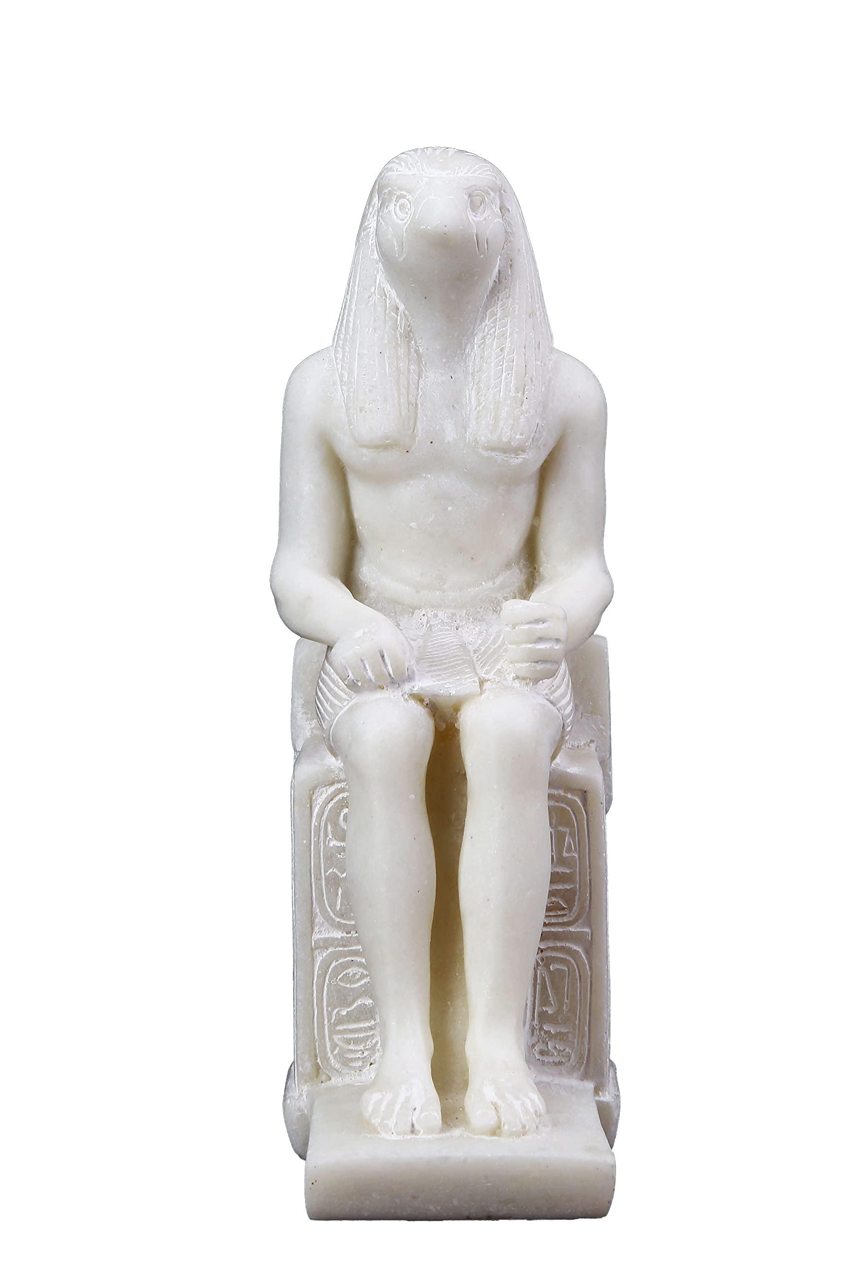 Unique ancient Egyptian Falcon Bird god Horus seated statue marble stone made in Egypt. His name means he who is above and he who is distant. He was a god of the sky and war.
